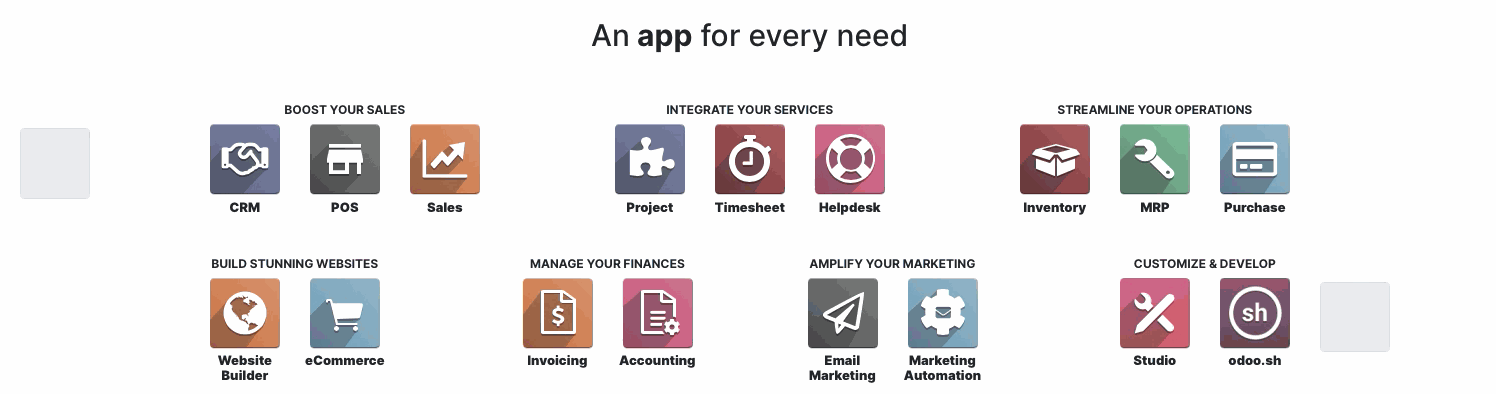 Between the Odoo apps and the tens of thousands of Community apps, there is something to help address all of your business needs in a single, cost-effective and modular solution: no more work to get different technology cooperating.